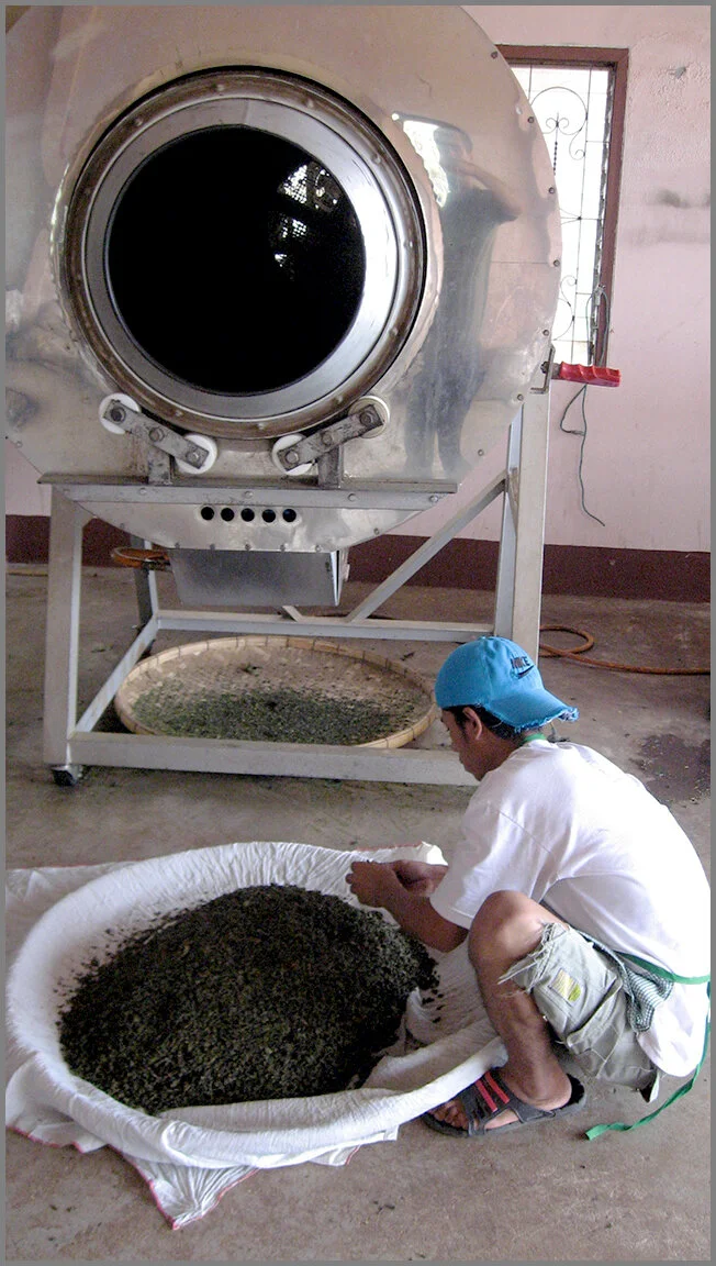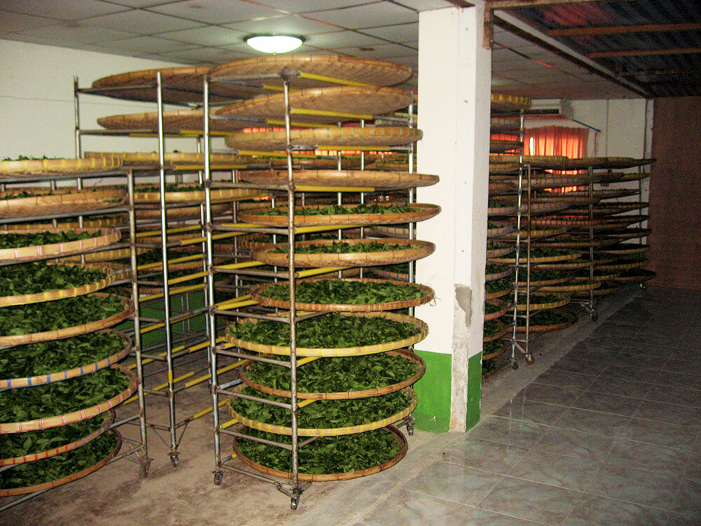 First the tea is plucked from the plants then withering takes place, which is basically air drying. Rolling and crushing is performed by placing the sorted tea in a cloth and squeezed in machines.