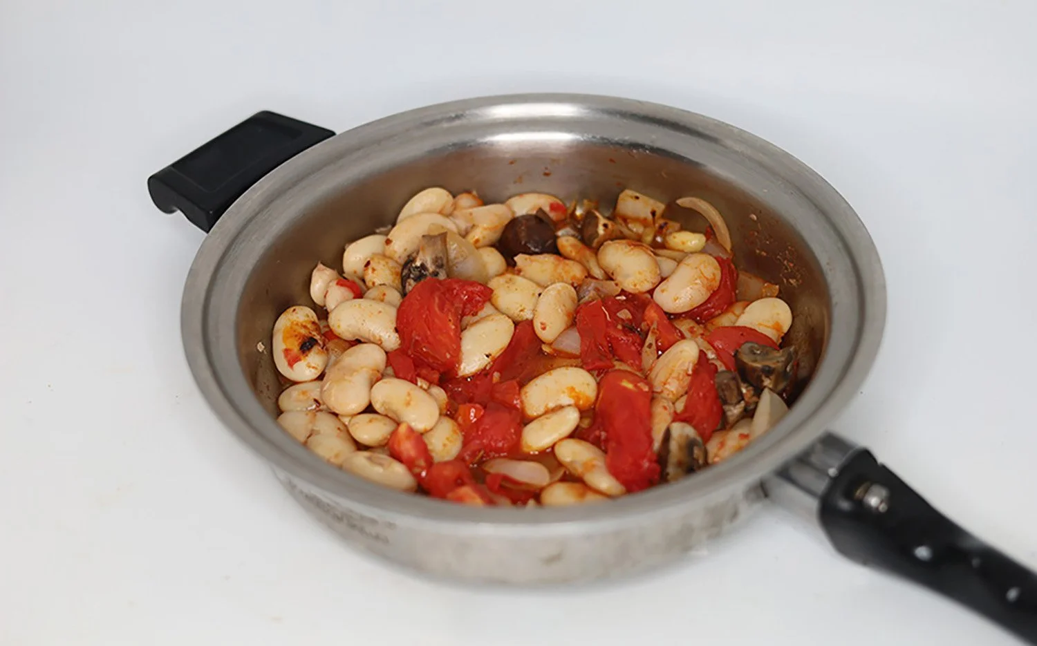 Prepare a sauce by cutting and combining mushrooms, garlic, onions, and tomatoes